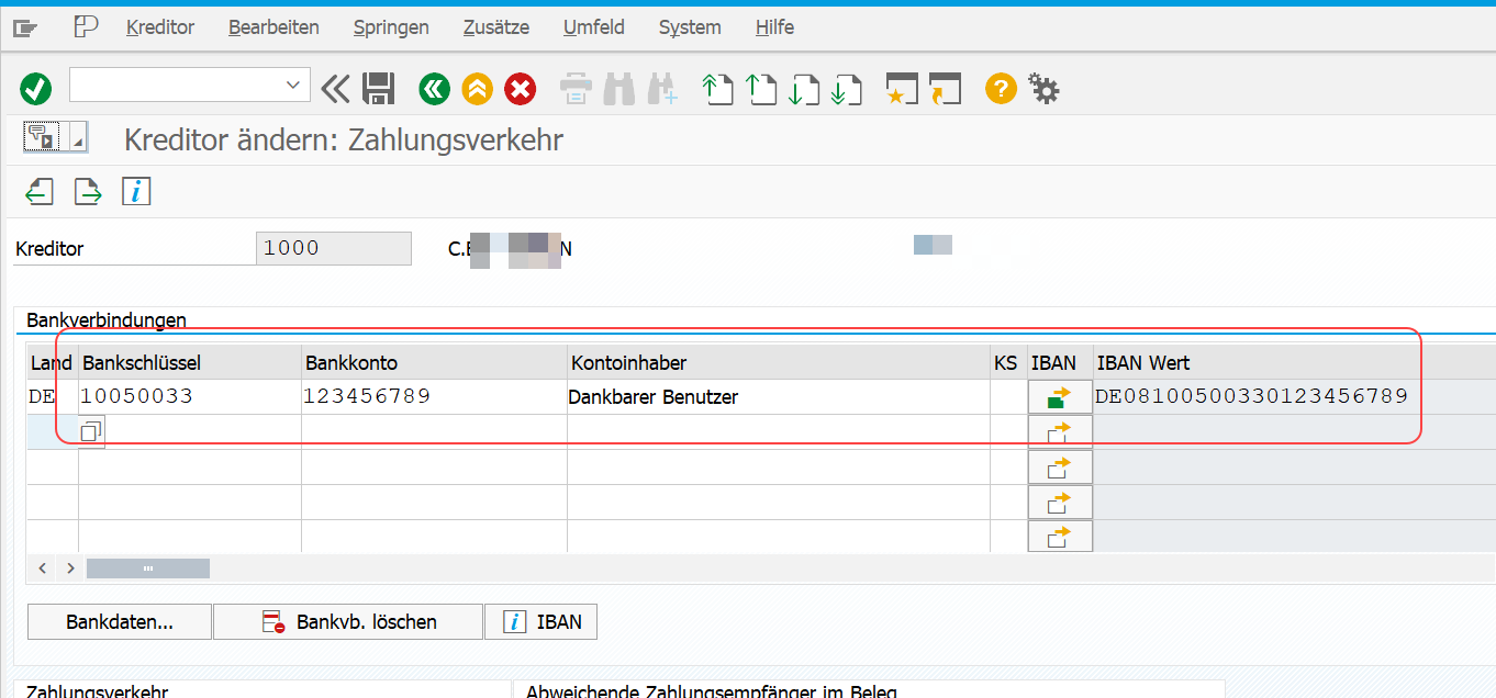 Habe ich mich für einen “passenden” Lieferanten entschieden, fehlt nur noch ein Schritt: Die Kontodaten des Lieferanten mit meinen eigenen auszutauschen. Dazu die Transaktion FK02 öffnen (bei S/4HANA Transaktion BP) und nach dem Lieferanten suchen.