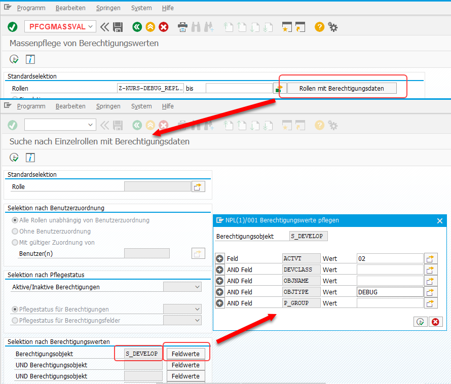 Mit PFCGMASSVAL Berechtigung DEBUG/REPLACE aus SAP Rollen entfernen