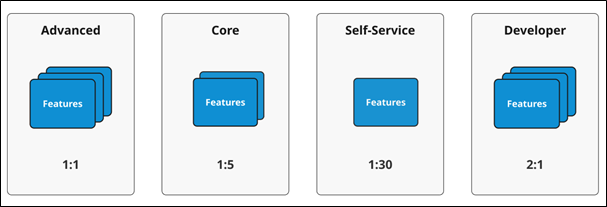 - FUE entspricht 30 Self-Service Usern (eingeschränkter Zugriff)